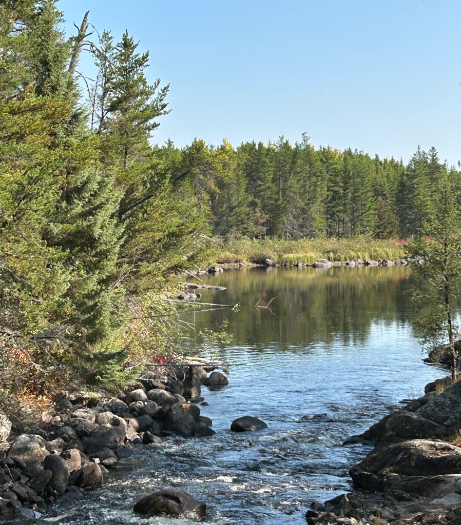 Up early to check out of the hotel. Breakfast at Tim Horton’s. Picked up bait at the Silver Minnow. Very little traffic on 527, just a few logging trucks. Ahead of schedule, so while John and Zack hunted, we checked out a new area. Talked to some moose hunters that were scouting the area and a father son team out grouse hunting with their side by side ATV. Found a nice boat landing and several campsites.