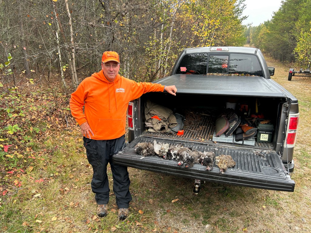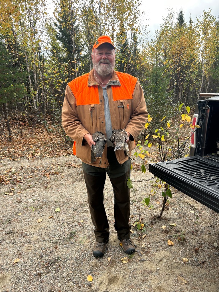 Jim, John and I headed out in John’s truck. Zack was on his ATV. I shot my first grouse, less than a mile from camp.