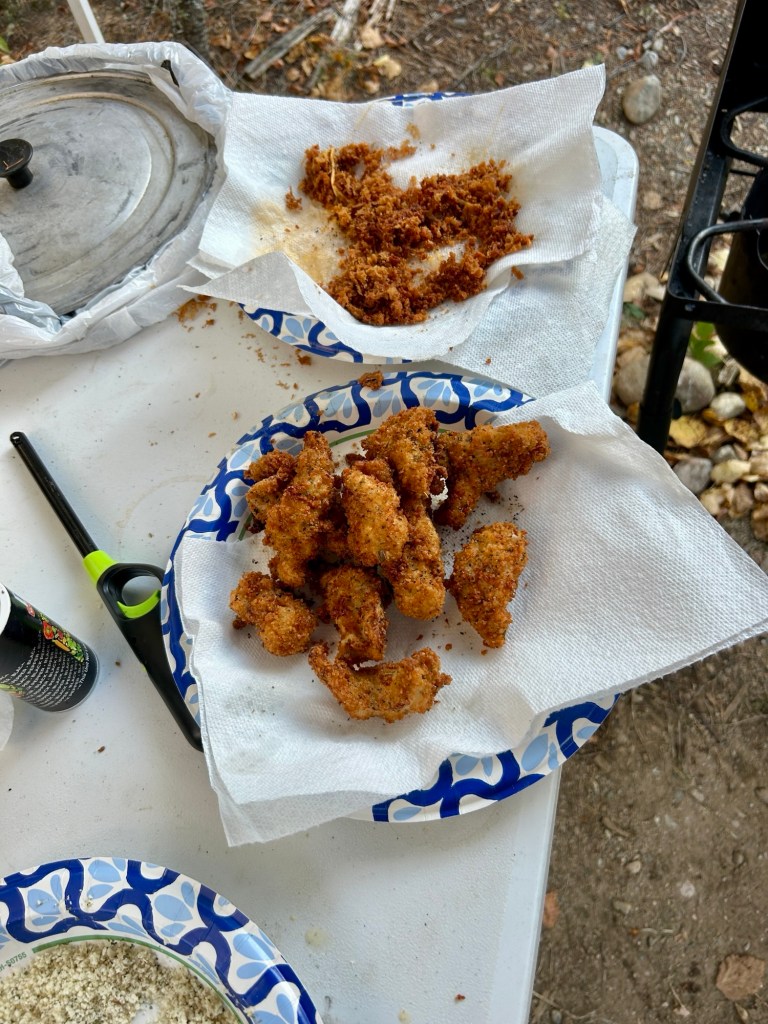 We packed up just about everything before dinner. We fried onion rings, cheese curds, walleye and grouse.