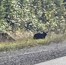 Up early to pack up the sleeping stuff and take down the tents (covered in the morning dew). On the road at 8:00. Saw a bear with two cubs on the side of the road.