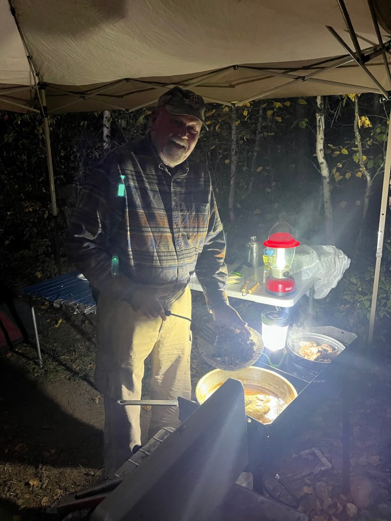 We were able to fish for a few hours before returning to camp for dinner. John brought some big thick steaks and we pan fried the fish we kept. A Surf ‘n Turf meal with garlic bread and baked beans that was fantastic!