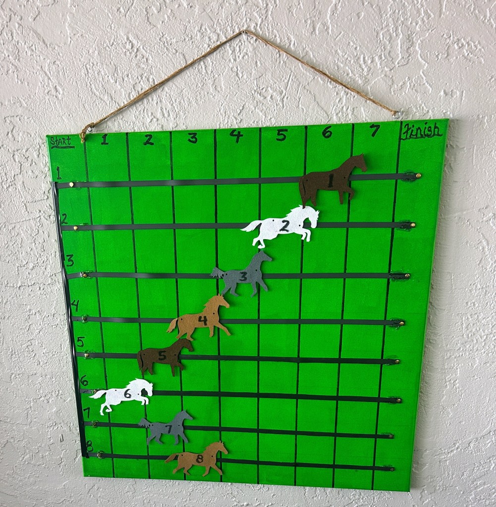 – Linda will shake and draw numbers to move the horse towards the finish line.