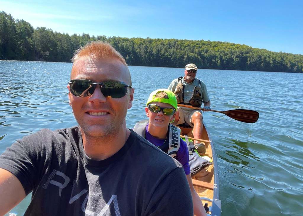 Having 3 Pelton men in one canoe on a circle route reminded me of this picture from 1966 with my Dad in the back and brother Tim in the middle. I realize that my life with family in a canoe has come full circle!