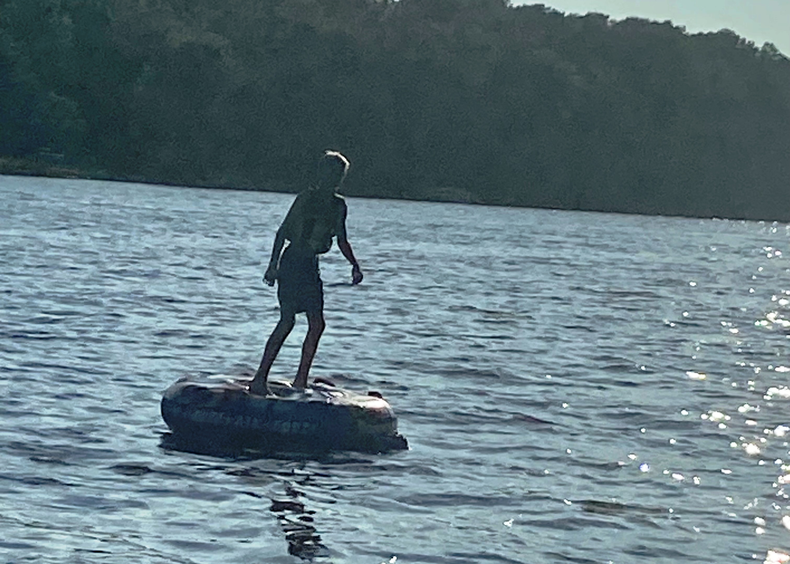 Oldest son Scott and grandson Will (10) were able to leave their home in New Berlin, WI early, so we had a chance to pull Will around on the tube behind the pontoon. I could not shake him off the tube until he started trying to show off.