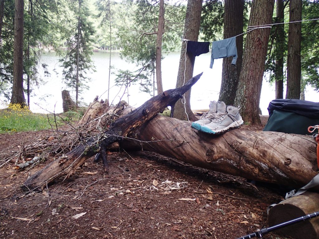 Kara’s new tent has a screened in porch, or what we call in Florida, a Lanai, proved very useful during the frequent rainstorms. Nice breeze on the hill kept the bugs away. The loon calls echoed through the hills and lakes until after dark. Kara made a great campfire.