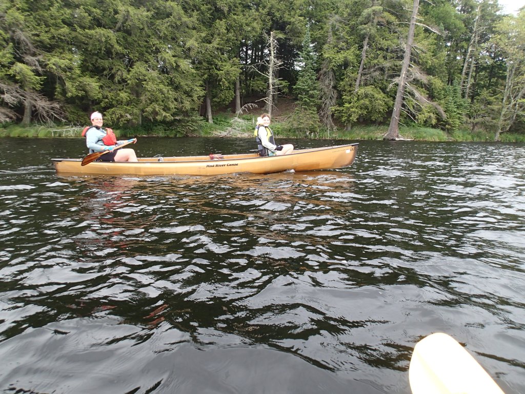 Kara and I paddled together with Grace in the solo canoe. Navigated our way through the narrow channel to find the portage to Mountain Lake. A short portage was a welcomed sight. With Kara and Grace in the tandem, I took the solo canoe and with the wind at our back, we drifted the length of Mountain Lake to find the portage to East Bear Lake.