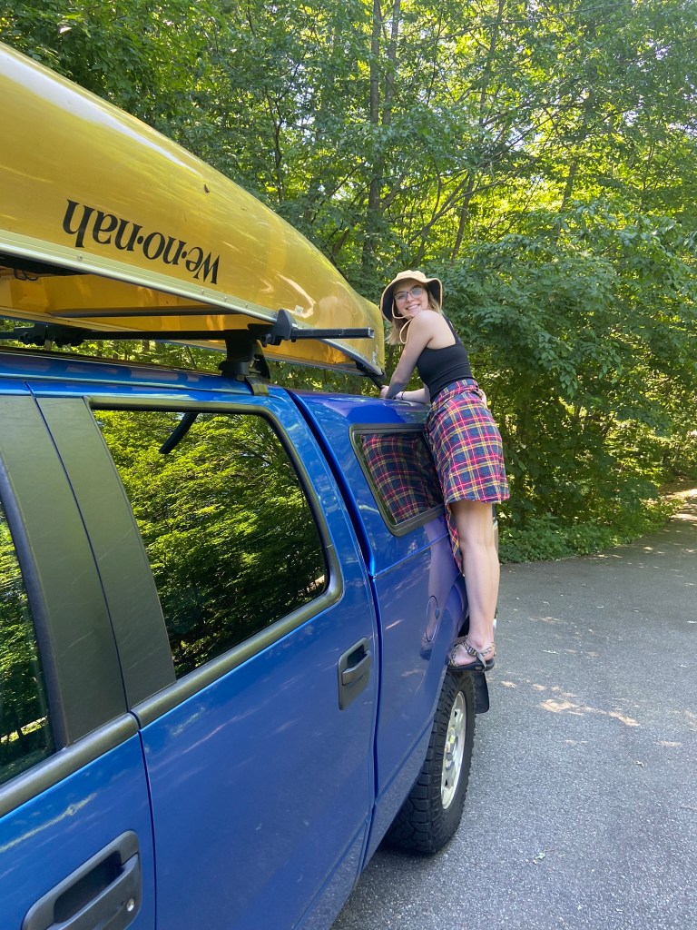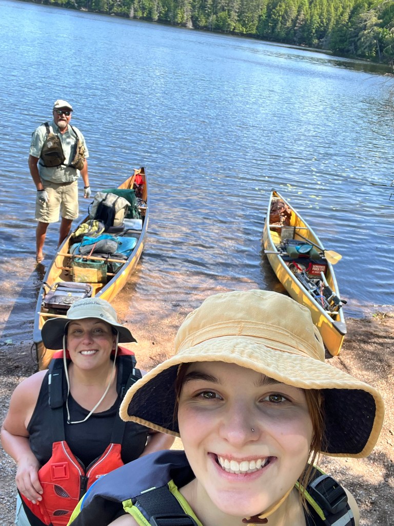 Oldest daughter Kara and granddaughter Grace (19 in August) arrived to help me load the two canoes and finish packing the truck. Grace wants to take her friend on a canoe trip, so I made sure that she learned how to tie down the canoes on the truck.