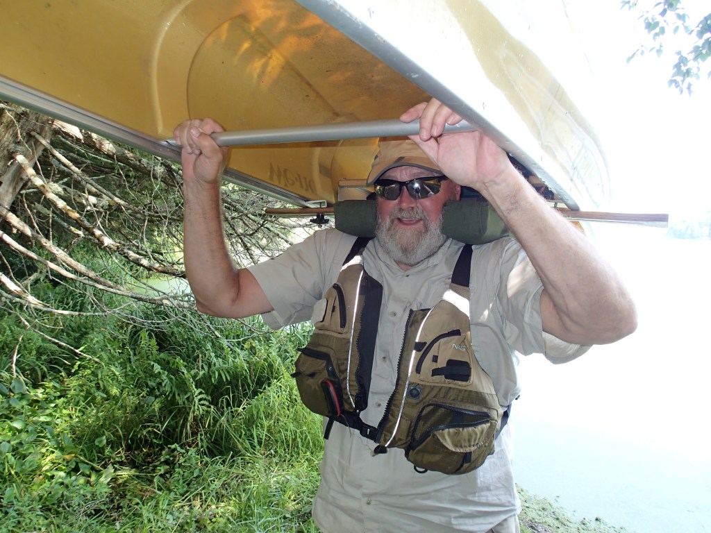The girls were struggling to bucket carry the big canoe, so we unloaded it and put it on my shoulders to complete the portage to Clark Lake.