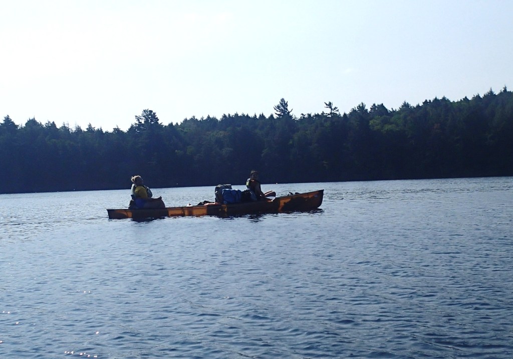 We unloaded the canoes and gear at the Crooked Lake access. Fortunate to have a calm and cool day.